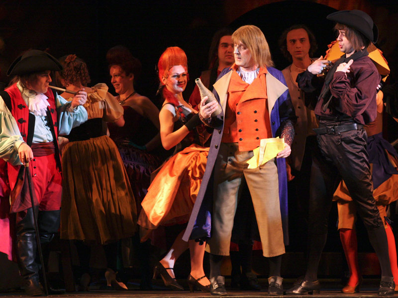 Career’s top of Austrian composer Leo Fall became operetta “Madame Pompadour” staged in Berlin on 10th of September 1922. On the stage of Saint-Petersburg Theatre of Musical comedy it was never performed before. Intrigues of court, light flirting, rebel spirit increasing among population dissatisfied by reign of Ludovic XV, irony towards favourite of king, luxury of court life, love troubles of story are framed by stylish lyrical, sentimental and at the same time a little bit ironic musical drapery of waltzes, dancing duets and “cascades”. Operetta tells about charming and clever favourite of king, actually uncrowned queen, who according to the legend was illegitimate daughter of grandee of high rank – Jeanne Antoinette Puasson, marquise Pompadour. One day during king’s absence accompanied by faithful maidservant she runs away from luxurious apartments of palace hoping to meet man of her dream… And she succeeds in finding the one whom she could love with all her heart, but risky plans of marquise are disrupted by sudden king’s arrival from the hunt. It’s worth much for Madame Pompadour to get out from such situation, especially because her beloved beauty is husband of her suddenly found stepsister. And almighty marquise steps back… it’s her destiny till the end of life to be near the king…