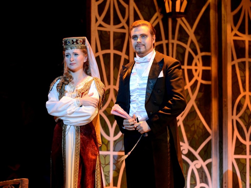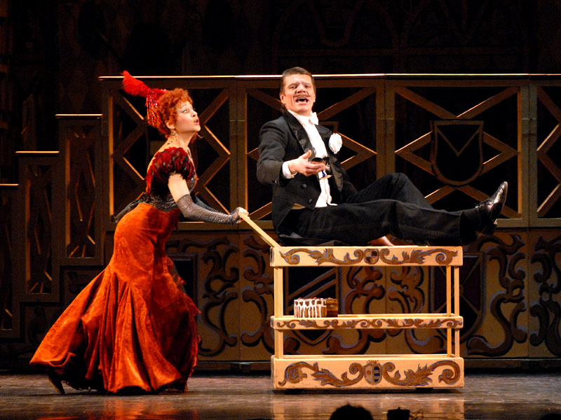 Small republic Monteverdo is in danger. Its gold reserves equal twenty millions belong to young widow Hanna Glawari and if she marries foreigner – Monteverdo will become bankrupt. Around this “disquieting” circumstance happen events of the clever operetta by Lehar “The Merry widow”. So, it’s necessary to guard the widow from foreigner admirers to safe her millions from becoming in new marriage the possession of other state. Mission of rescue of Motherland is given to the ambassador of the republic in Paris – baron Zetta. When man got to know about Hanna’s millions they just go mad – all of them consider themselves as candidates to her hand. And appearance of Hanna inflames their passions even more. And while everybody makes plans, thinking out how to seduce this rich beauty, she meets the man of her life – charming, courageous, ironic and not wishing to marry millions – he wants to marry for love. From operetta “Merry widow” which was first time staged on 20th of December 1902 in “Theatre an der Vin” began the world fame of Franz Lehar. Today it’s not possible to imagine repertoire of musical theatres without it. It is one of the most performable creature of the great composer. In this operetta there beautiful melodies which are often heard even in performances of the world best opera singers. Wonderful Russian composer S.V. Rahmaninov after watching in his time in Paris this operetta was delighted and acknowledged composition as genius. The performance is recommended for viewers aged 12 and above