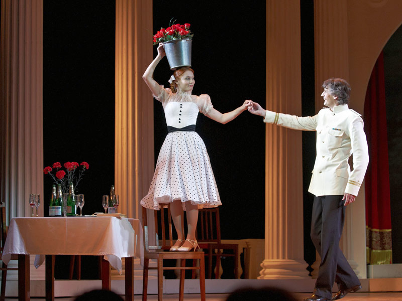 Created in 1956 one of the best and most popular operetta of Konstantin Listov “Sevastopol waltz” will be presented in theatre playbill, this production will be devoted to the 65th anniversary from the date of Victory in Great Patriotic War. Destiny of this performance was surprisingly happy. It’s hard to remember theatre of our country which had never staged “Sevastopol waltz” in its playbill. On the stage of our theatre it has been staged twice – in 1961 and in 1973, always being a success with the public. In this operetta truth of characters and feelings, heroic spirit and humor, lyricism and elements of pathetic are vividly combined. Easy to remember melody of well-known song “Sevastopol waltz” was very popular in ones time. This song became the main tune and motive of created later operetta, and being revived in that way – for long period of time sounding in new genre. Romantic story about love is very touching: it makes audience feel involved in the story, cry and laugh with characters, believe in true feelings, love and remember those who gave their lives for victory. We know characters of this operetta, they seem to be close to us due to old and wonderful movies about war in which people despite the difficulties and sufferings don’t loose strength of mind and sense of humor. The performance is recommended for viewers aged 12 and above